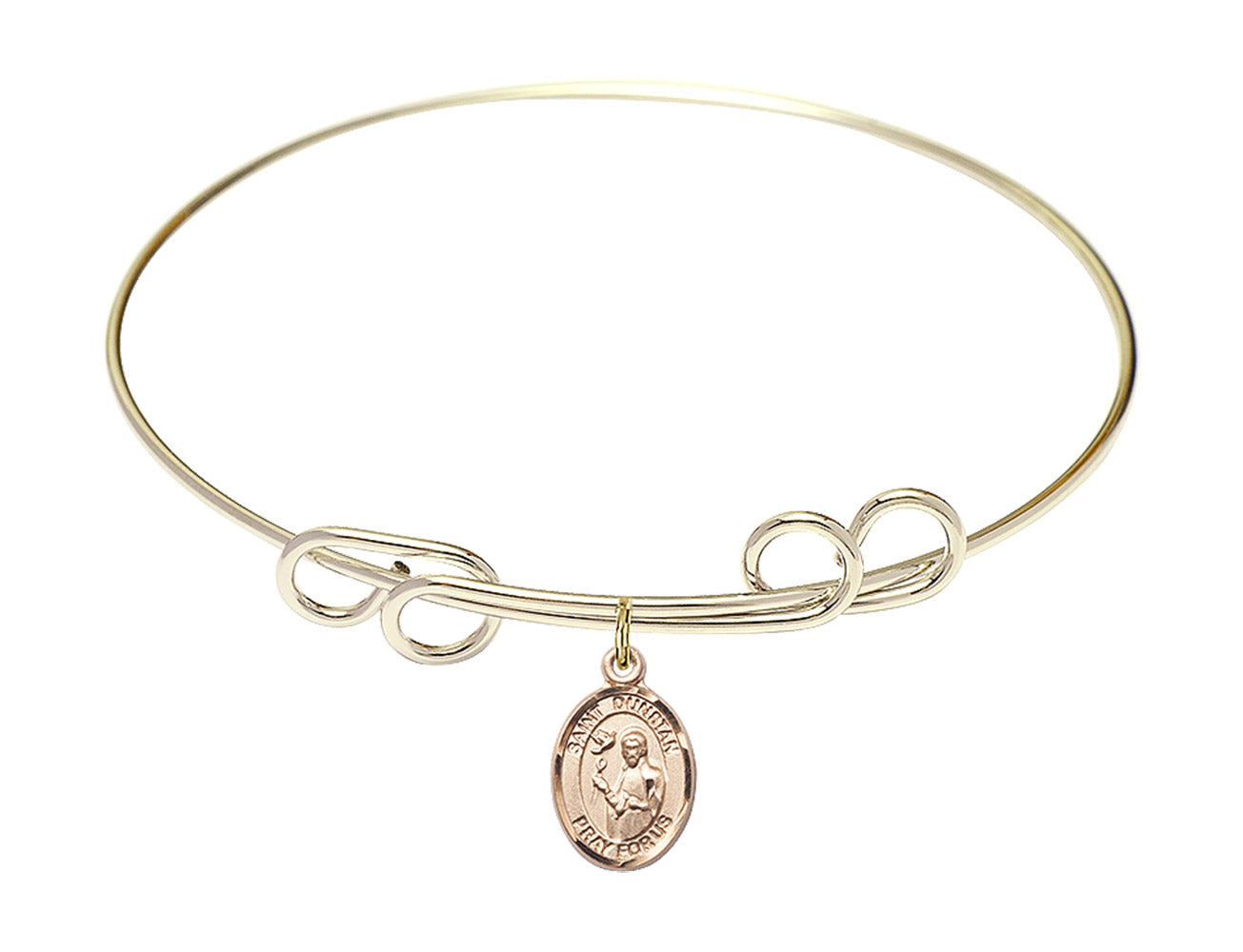Made with rhodium-plated or gold-plated hand-wrapped wire bangles and Sterling Silver or 14kt Gold-Filled charm-size (1/2 x 1/4 inch) patron saint medals.Dunstan had the gift of prophecy and he committed himself to the Church after suffering a skin disease, possibly leprosy. As Abbot of Glastonbury, he set himself to reinstating monastic life. He served as a religious advisor to Kings Eadred and Eadwig and became Archbishop of Winchester before retiring to Canterbury.