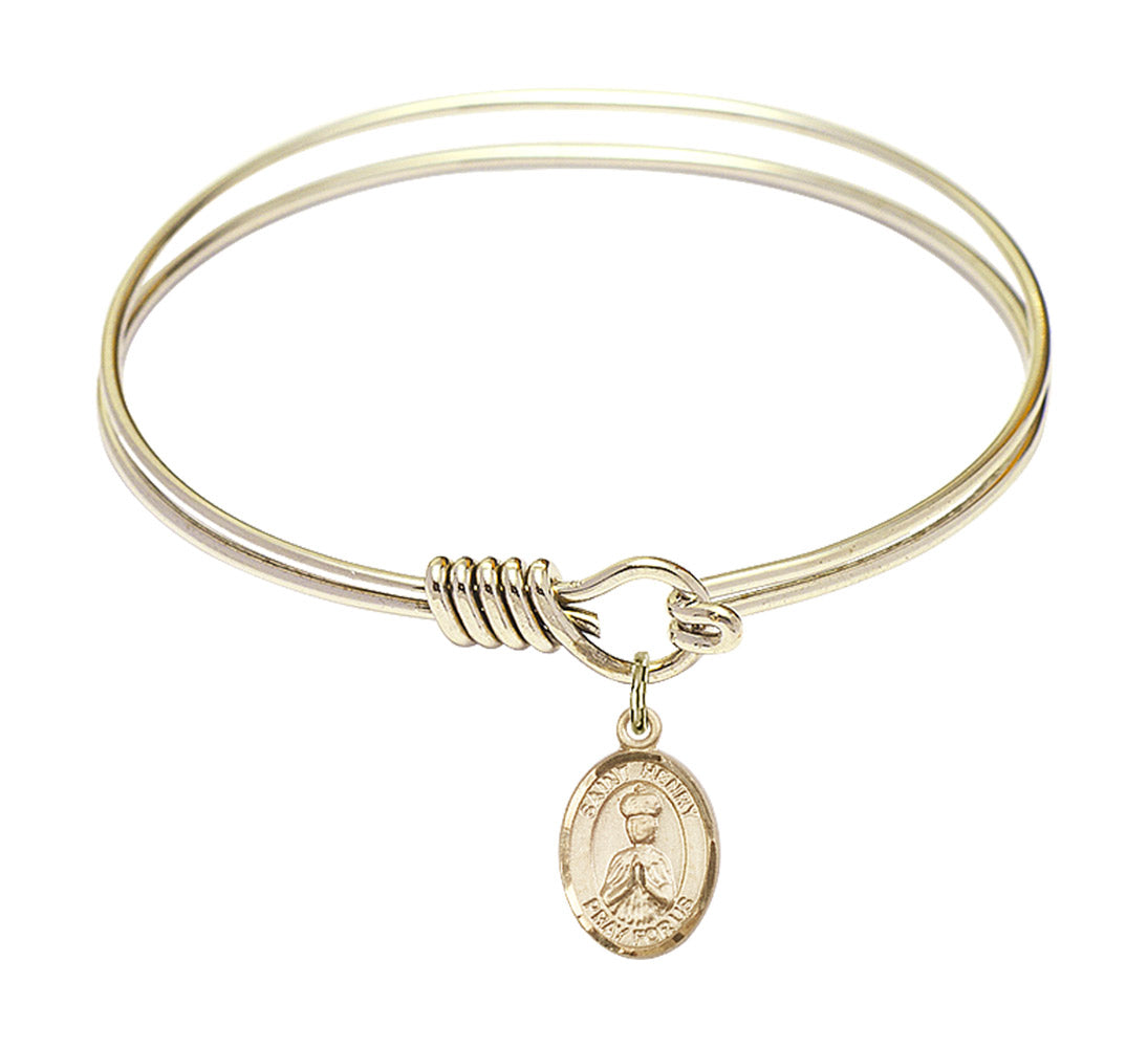 Made with rhodium-plated or gold-plated hand-wrapped wire bangles and Sterling Silver or 14kt Gold-Filled charm-size (1/2 x 1/4 inch) patron saint medals.In 1014, Henry was crowned Holy Roman Emperor. He tried to establish peace in Europe, and succeeded in Germany. He married Saint Cunegunda, both prayerful people, but they never had children-hence his patronage of the childless.