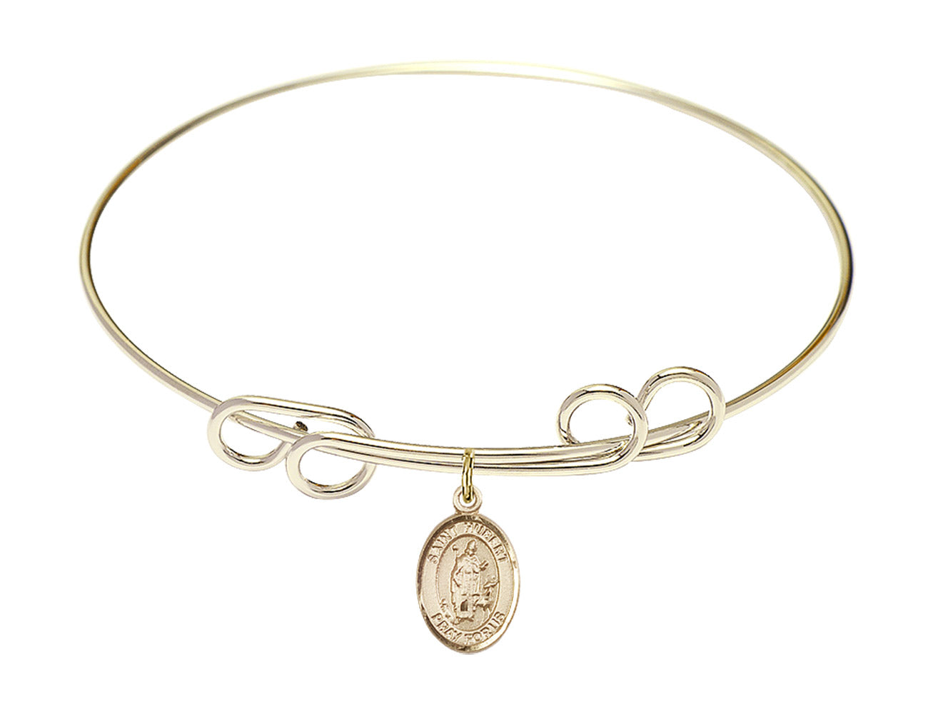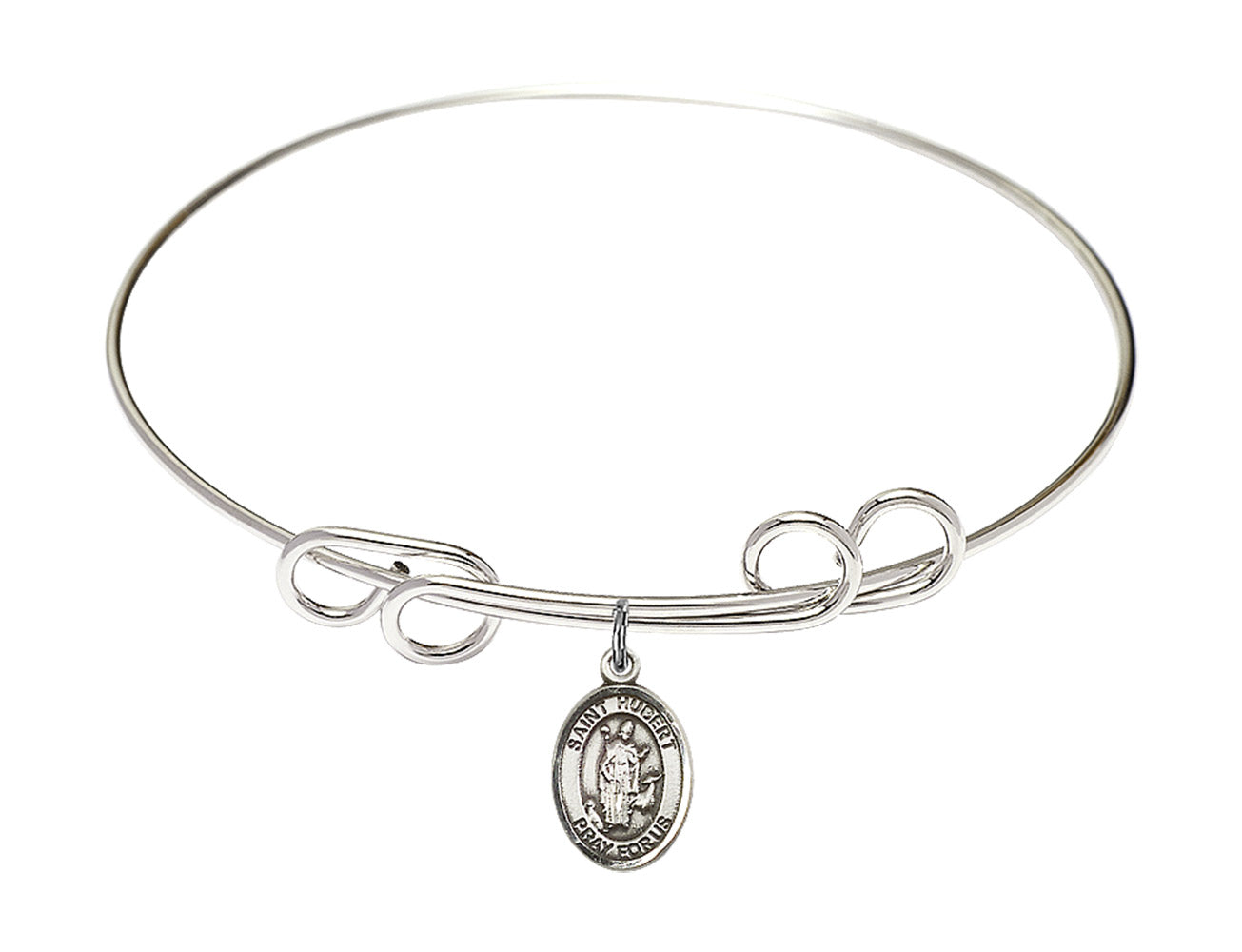 Made with rhodium-plated or gold-plated hand-wrapped wire bangles and Sterling Silver or 14kt Gold-Filled charm-size (1/2 x 1/4 inch) patron saint medals.Hubert was a passionate hunter. While hunting on Good Friday, he received a vision of a crucifix between a stag's antlers . After the death of his wife, he became fully committed to converting to Christianity. Hubert handed over the care of his son to his Brother, and studied to become a priest. Hubert embraced ethical hunting behavior, holding animals in a higher regard as God's creatures. He was known for converting pagans, and strengthening Christians.