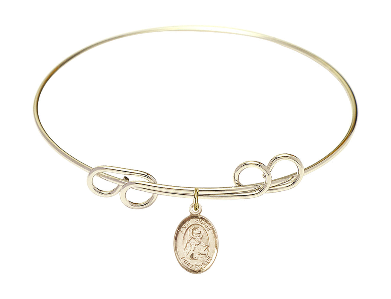 Made with rhodium-plated or gold-plated hand-wrapped wire bangles and Sterling Silver or 14kt Gold-Filled charm-size (1/2 x 1/4 inch) patron saint medals.Saint Isidore is not the official patron of computers and the Internet, but he is widely considered to be the most likely candidate. During his time, the seventh century, he assembled an encyclopedia of everything known at the time. His supporters consider this the first database, which is their major reason for him to become patron of the Internet. He became Archbishop of Seville, Spain after his brother, c. 601.