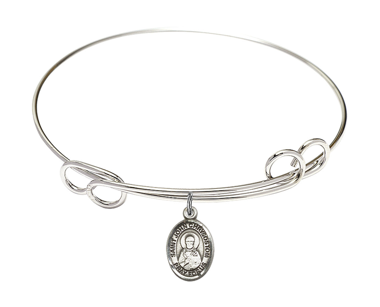 Made with rhodium-plated or gold-plated hand-wrapped wire bangles and Sterling Silver or 14kt Gold-Filled charm-size (1/2 x 1/4 inch) patron saint medals.John was not a healthy man, but he was one of the most influential speakers of the time (Chrysostom means 'golden-mouthed' in Greek). John took a major stand against political corruption, and was met with heavy opposition from the rich. Criticized for possilbly indulging in rich wine and food as well as heresy, John never ceased his lectures and sermons.