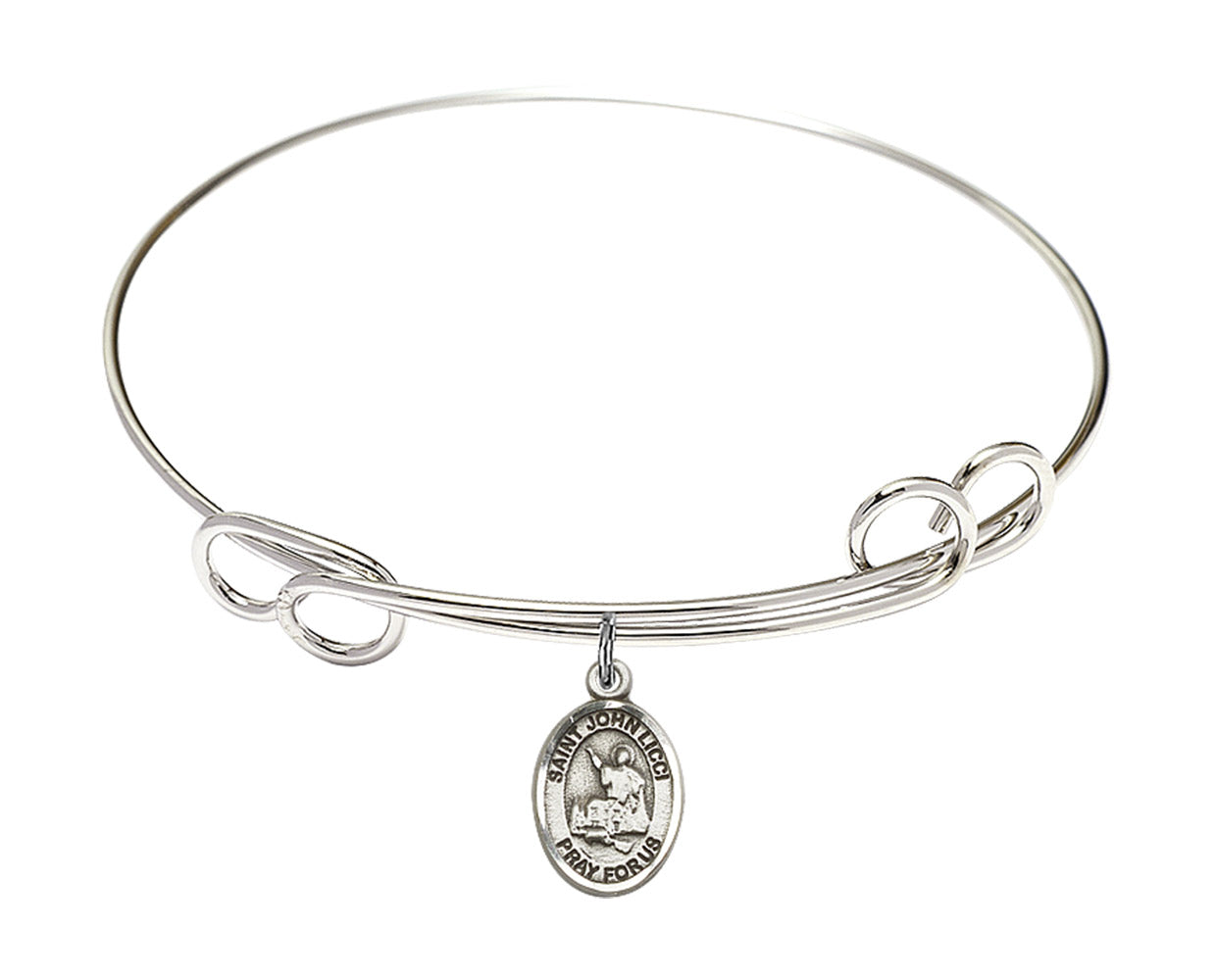 Made with rhodium-plated or gold-plated hand-wrapped wire bangles and Sterling Silver or 14kt Gold-Filled charm-size (1/2 x 1/4 inch) patron saint medals.John's mother died during childbirth leaving his father to care for him. Forced to leave him alone as a baby while he worked, a neighbor heard the cries of baby John and fed him next to her paralyzed husband. Her husband was miraculously cured. As an adult, he oversaw the construction of the Saint Mary of the Angels, a partially built church he found abandoned in the woods, where his prayers produced several miracles. A member of the Dominican Order for 96 years and living for 111 years, he was able to avert a burglary by two outlaws, and healed at least three people with traumatic head injuries.