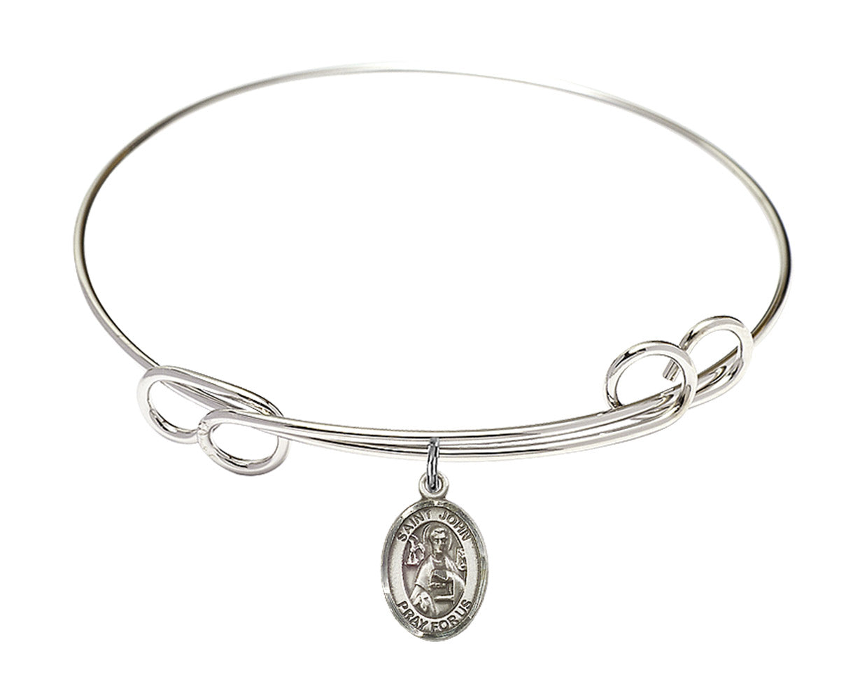 Made with rhodium-plated or gold-plated hand-wrapped wire bangles and Sterling Silver or 14kt Gold-Filled charm-size (1/2 x 1/4 inch) patron saint medals.Saint John was one of the Twelve Apostles and the closet to Jesus, and for this he was known as the beloved disciple. He was the brother of Saint James the Greater and a follower of Saint John the Baptist. Jesus made him the guardian of Our Lady.