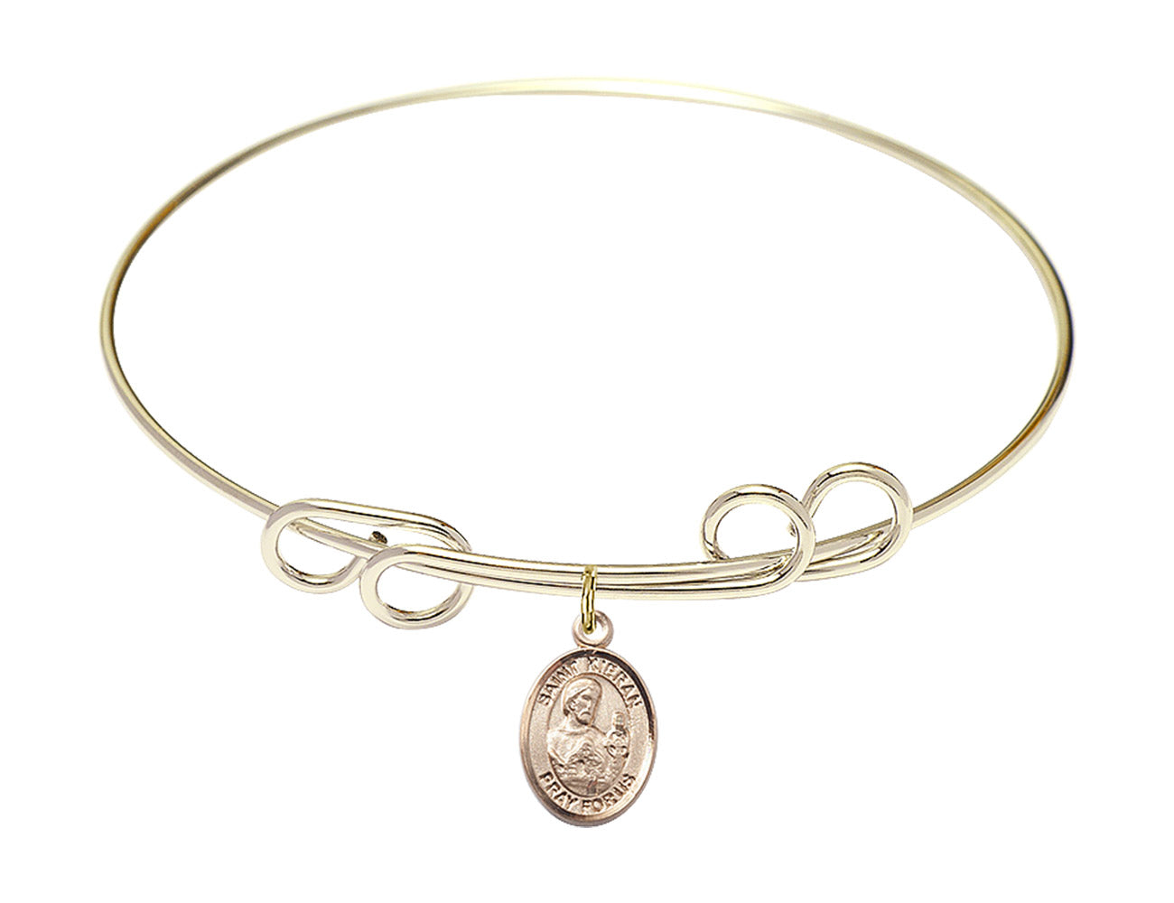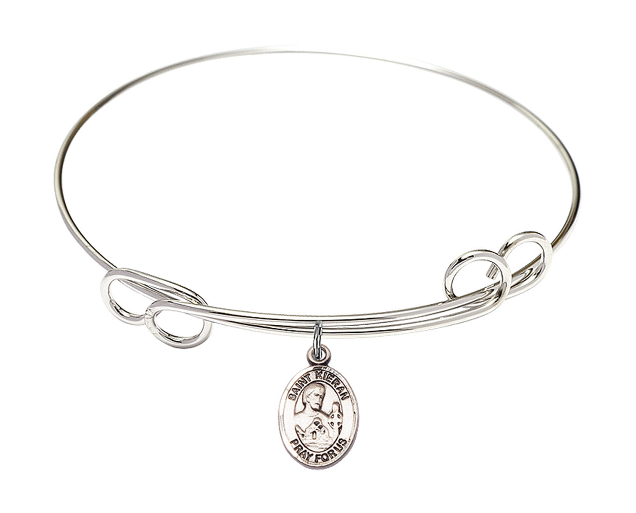 Made with rhodium-plated or gold-plated hand-wrapped wire bangles and Sterling Silver or 14kt Gold-Filled charm-size (1/2 x 1/4 inch) patron saint medals.Also known as Ciaran of Saigir, he was one of the Twelve Apostles of Ireland and believed to be the first-born of Irish Saints. He is attributed to the founding of the Saigir monastery as well as a women's monastery run by his mother. He was also fond of animals and used them as his first monks.