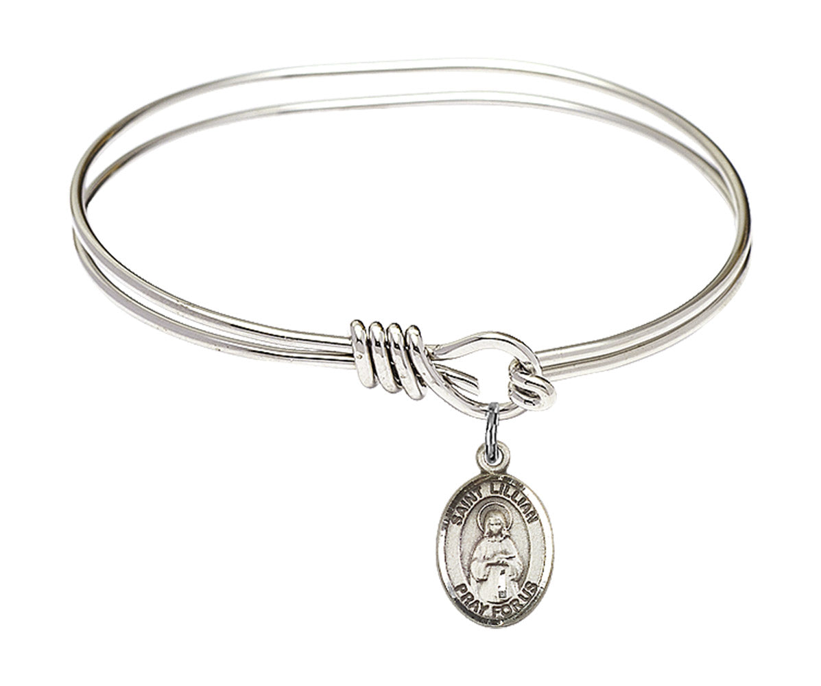 Made with rhodium-plated or gold-plated hand-wrapped wire bangles and Sterling Silver or 14kt Gold-Filled charm-size (1/2 x 1/4 inch) patron saint medals.Lillian was a laywoman and a closet Christian until the persecutions of Caliph Abderraham II, when she decided to openly display her Faith. She was martyred along with Saint George, and her husband Saint Felix.