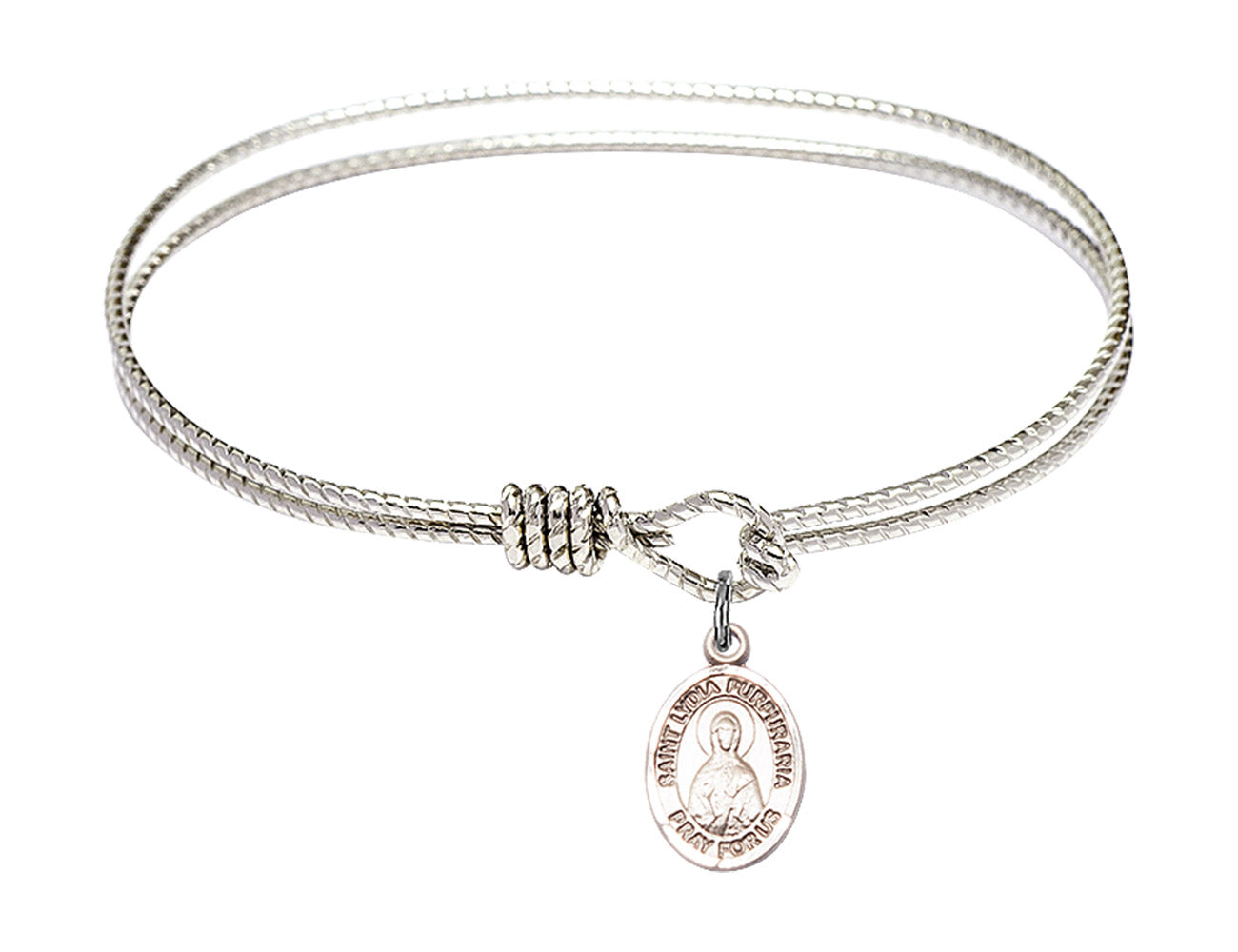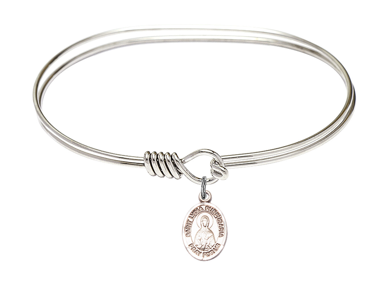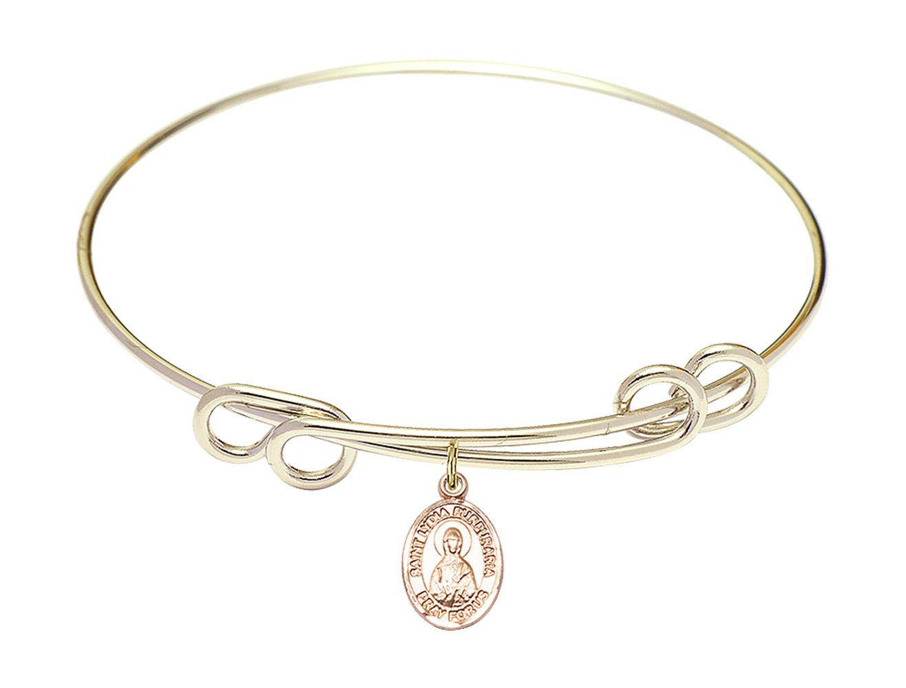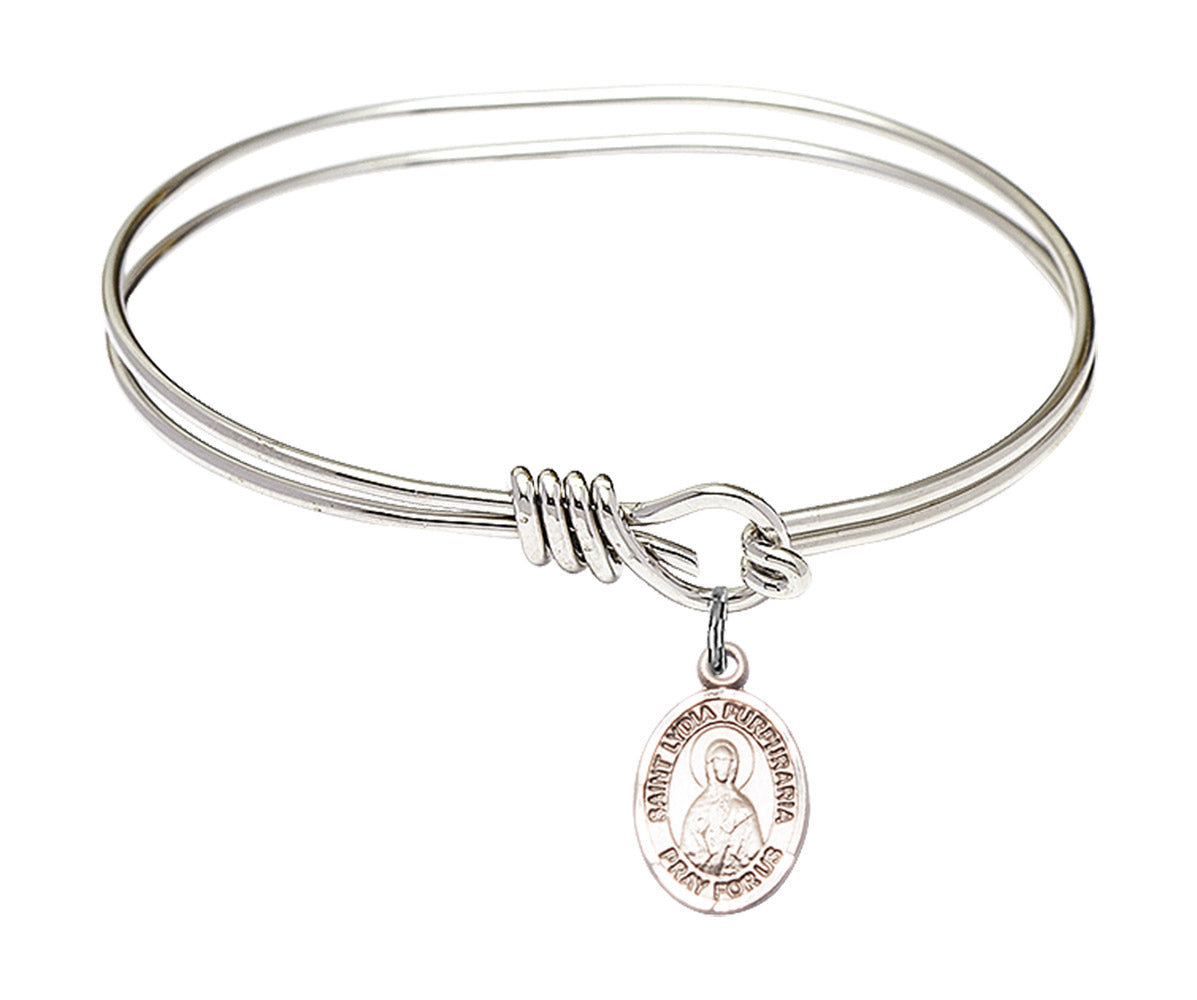 Made with rhodium-plated or gold-plated hand-wrapped wire bangles and Sterling Silver or 14kt Gold-Filled charm-size (1/2 x 1/4 inch) patron saint medals.Lydia worked as a seller of purple-dyed clothing in Thyatira, though it is not clear what position, if any, she held. When Saints Paul, Silas, and Timothy journeyed through Philippi, she offered them shelter and was converted. She continued to let other travellers and believers use her home as a Christian center.