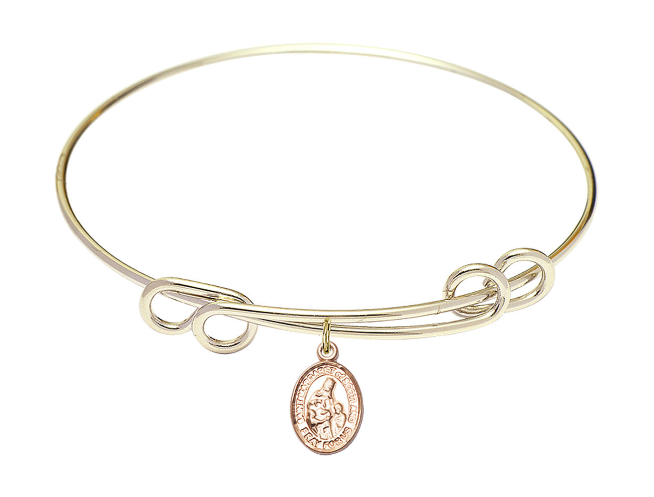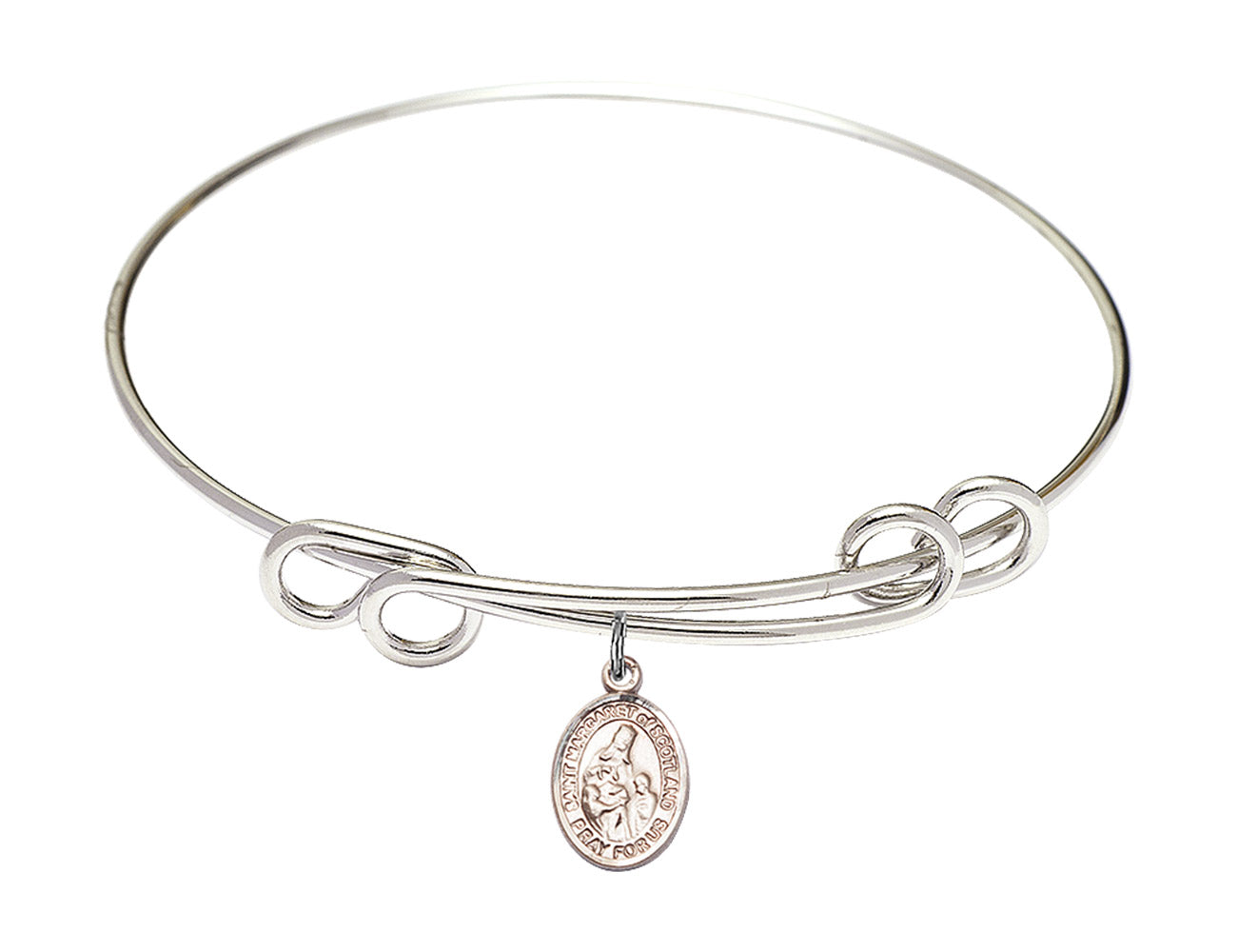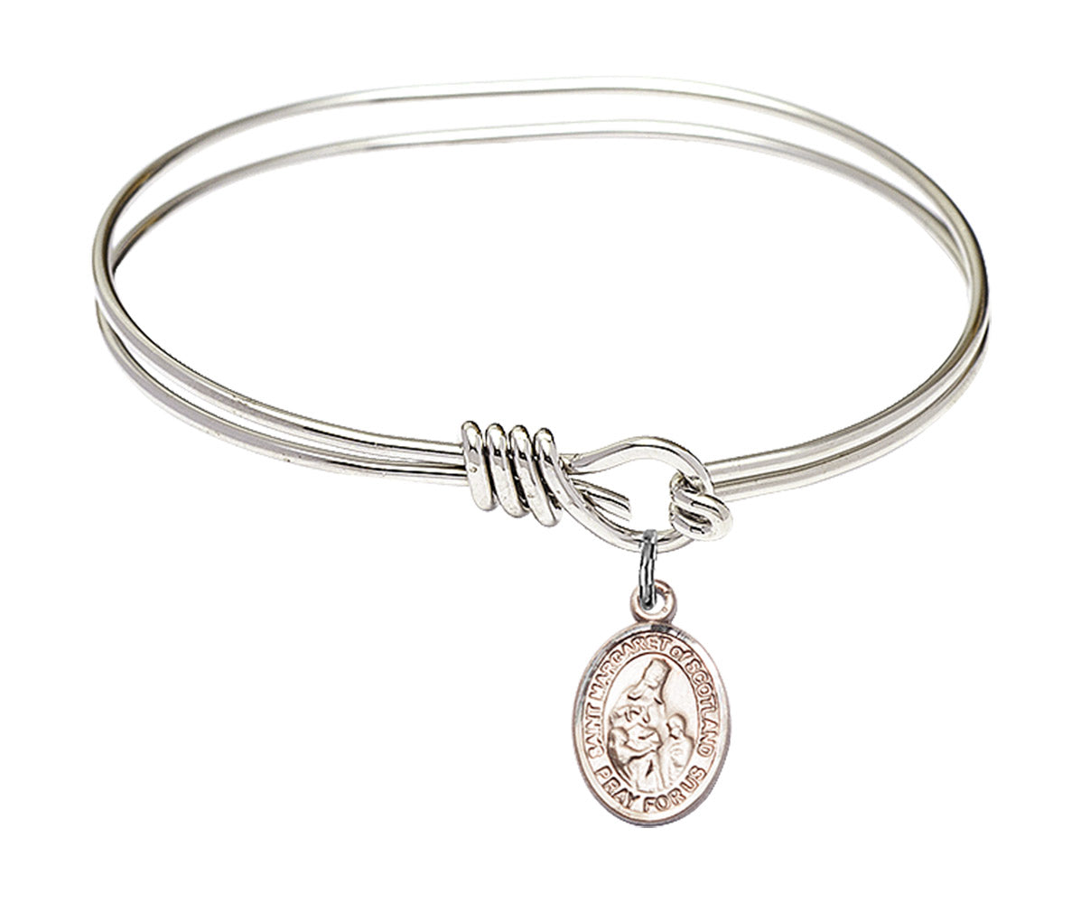 Made with rhodium-plated or gold-plated hand-wrapped wire bangles and Sterling Silver or 14kt Gold-Filled charm-size (1/2 x 1/4 inch) patron saint medals.Wife of King Malcolm III, she encouraged religion in Scotland, organizing commitees and advocating arts as well as awareness of religious abuses by priests. Mother of eight children, she was as devout in her private life as she was in her public life. She lost her husband and eldest son while they were defending their castle, dying herself days later.
