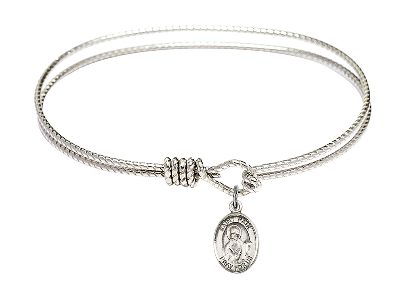 Made with rhodium-plated or gold-plated hand-wrapped wire bangles and Sterling Silver or 14kt Gold-Filled charm-size (1/2 x 1/4 inch) patron saint medals.Paul is widely considered to be one of the most important figures in Christianity. Originally Saul, who persecuted Christians as a Jew, but converted and renamed himself when he realized the extent of his actions. His teachings take up a large portion of the New Testament and the Acts of the Apostles. Both Paul and Peter were martyred by decapitation.