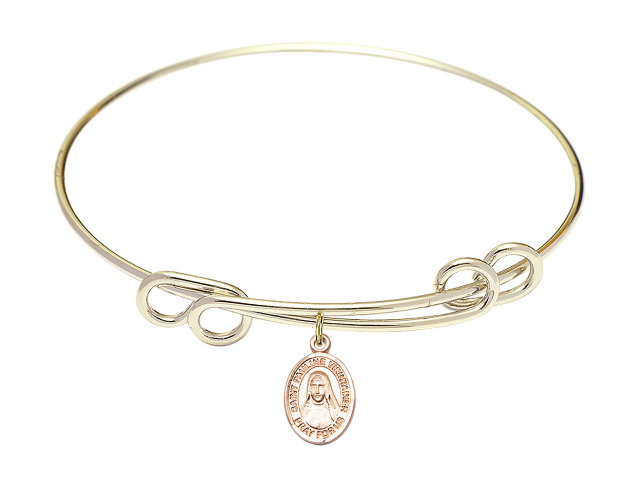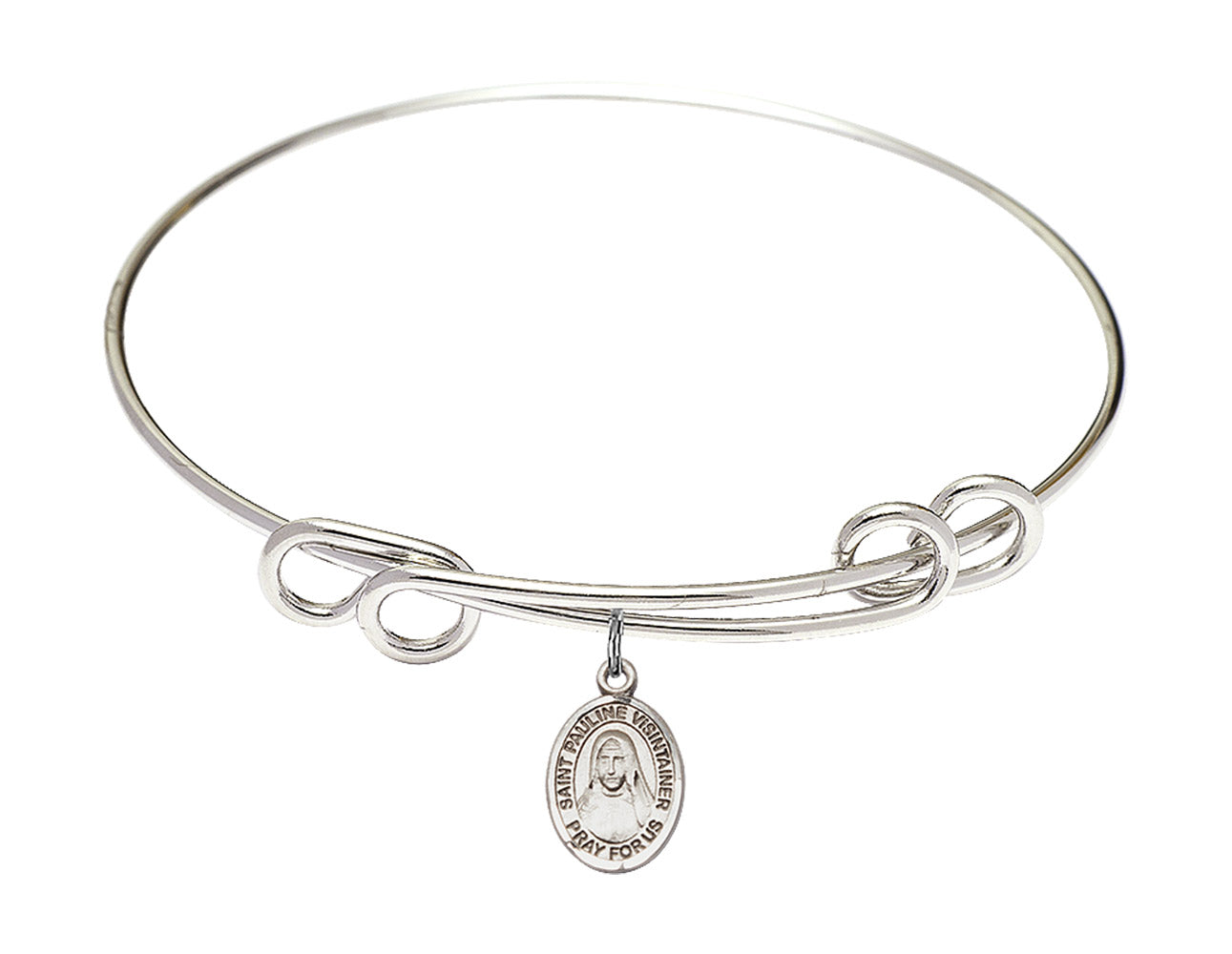 Made with rhodium-plated or gold-plated hand-wrapped wire bangles and Sterling Silver or 14kt Gold-Filled charm-size (1/2 x 1/4 inch) patron saint medals.Pauline was the first Brazilian to be proclaimed a patron saint, though she emigrated to Brazil from Italy in 1875. Although suffering from diabetes, she established a congregation for the Immaculate Conception of Our Lady and was elected Superior General for life. Although she was later removed, she did not stop caring for children and slaves.
