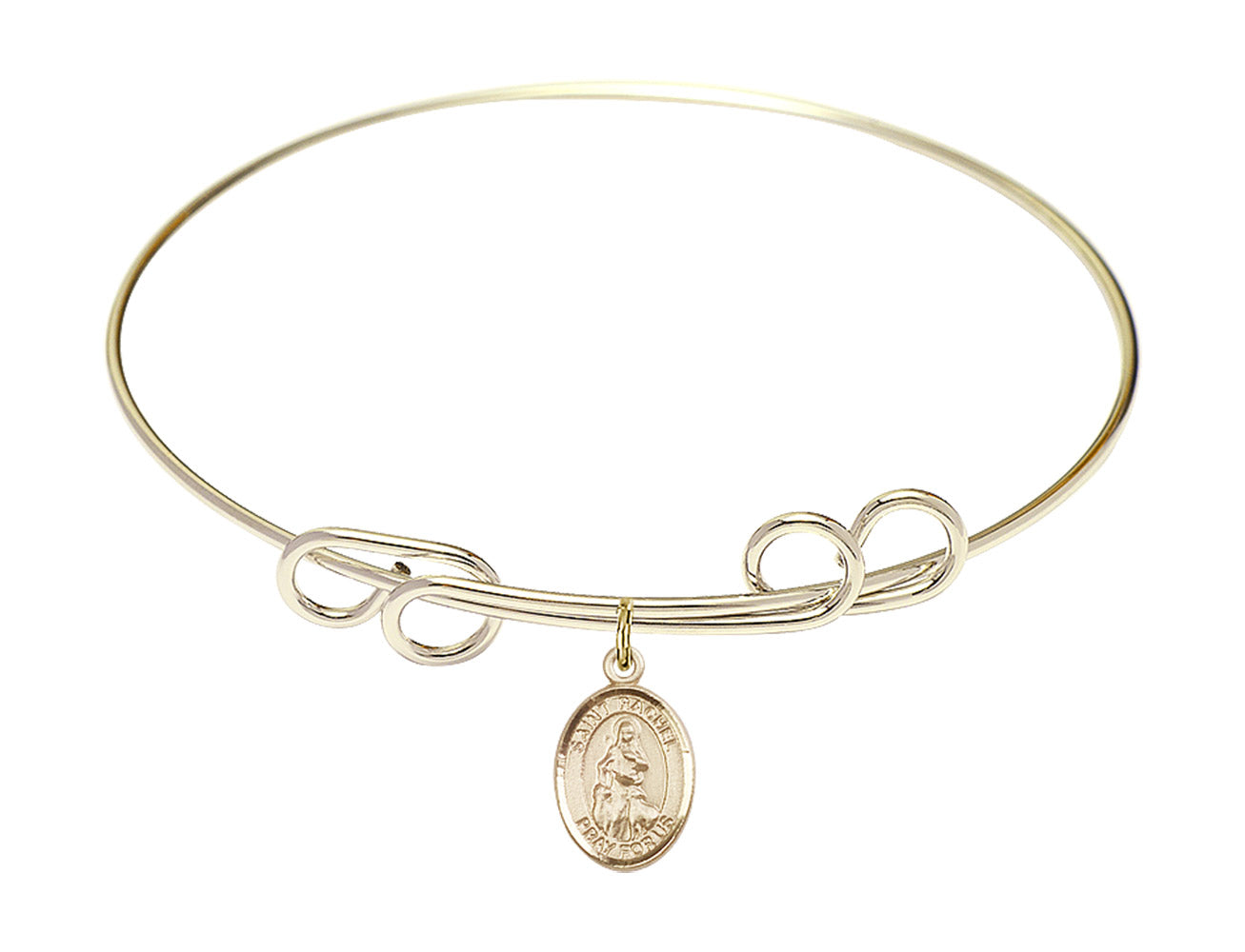 Made with rhodium-plated or gold-plated hand-wrapped wire bangles and Sterling Silver or 14kt Gold-Filled charm-size (1/2 x 1/4 inch) patron saint medals.Also called Rachel the Matriarch, she was the third wife of the Hebrew Patriarch Jacob. Jacob agreed to work seven years for her father before marrying her. Considered a sign of God's disfavor, Rachel was unable to give birth. Eventually she was able to give birth to two sons, Joseph and Benjamin, but died during delivery.