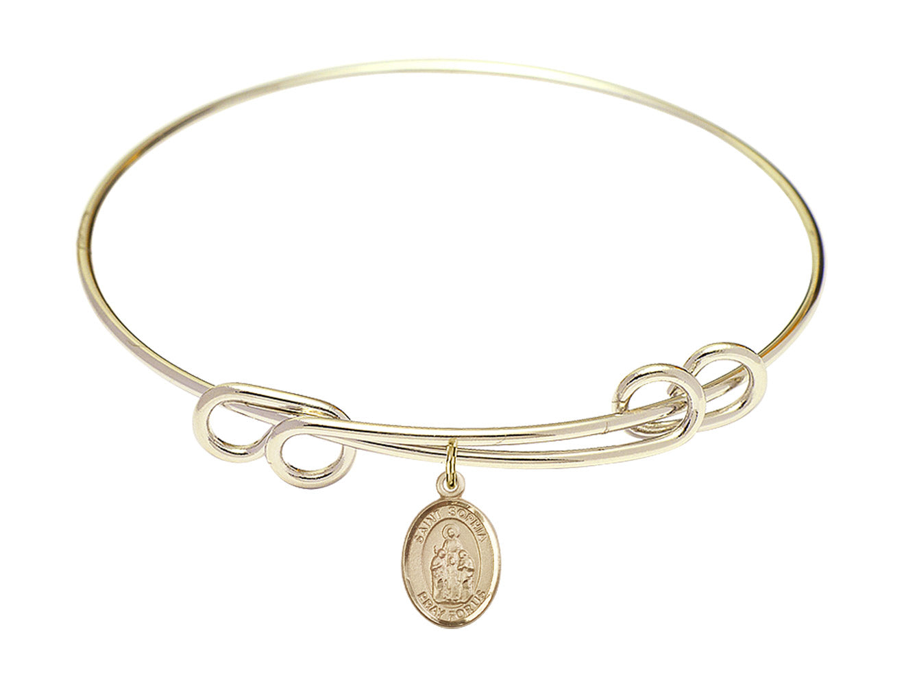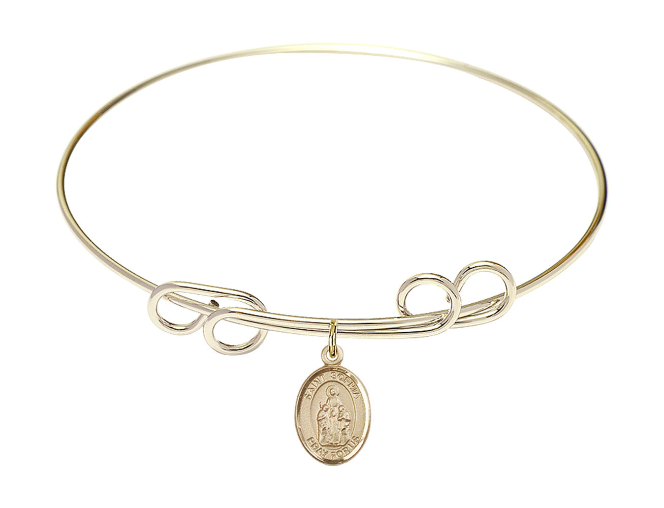 Made with rhodium-plated or gold-plated hand-wrapped wire bangles and Sterling Silver or 14kt Gold-Filled charm-size (1/2 x 1/4 inch) patron saint medals.Sophia was mother to three daughters, Faith, Hope, and Love, named after three virtues mentioned in Corinthians. During the reign of Hadrian, paranoid about the strength of their faith, each daughter was imprisoned, tortured, and killed. She died by their graves, praying in sorrow but happy for their salvation.