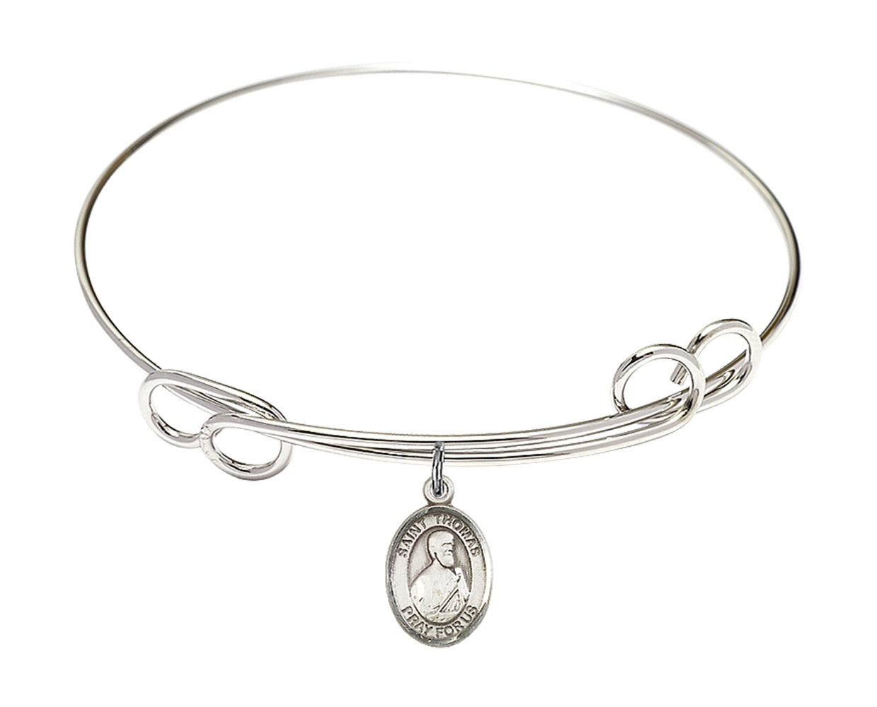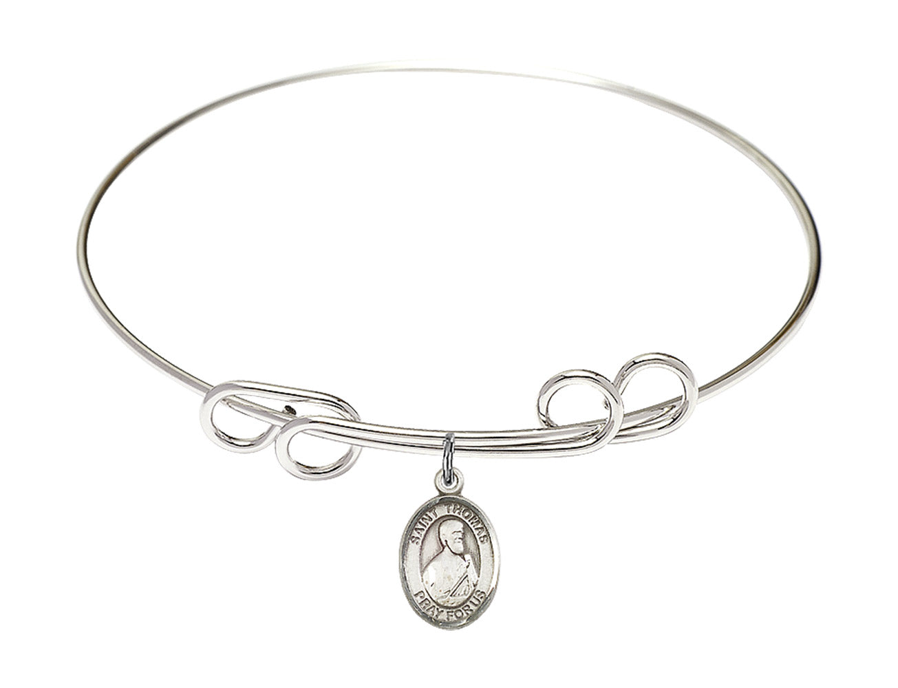 Made with rhodium-plated or gold-plated hand-wrapped wire bangles and Sterling Silver or 14kt Gold-Filled charm-size (1/2 x 1/4 inch) patron saint medals.Thomas was one of the Twelve Apostles of Jesus. He is mostly known for questioning the Resurrection of Jesus, leading to his nickname 'Doubting Thomas', but repented when a vision of Jesus confirmed his Resurrection. Despite his questioning, he never swayed from his loyalty to Jesus. There are some tales that claim St. Thomas baptized the Wise Men from the Nativity.