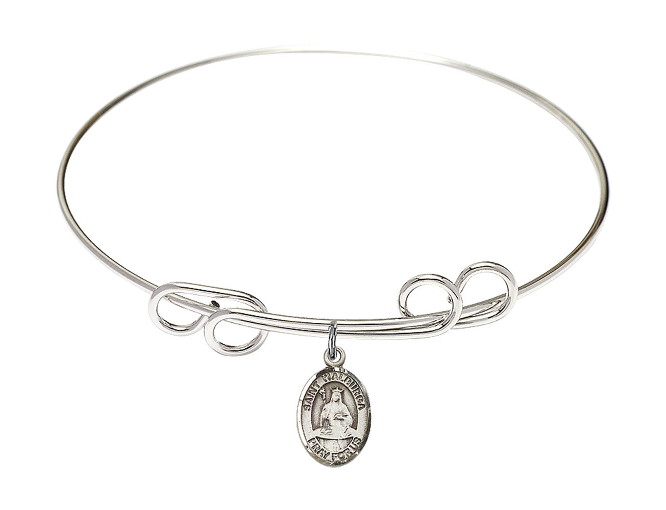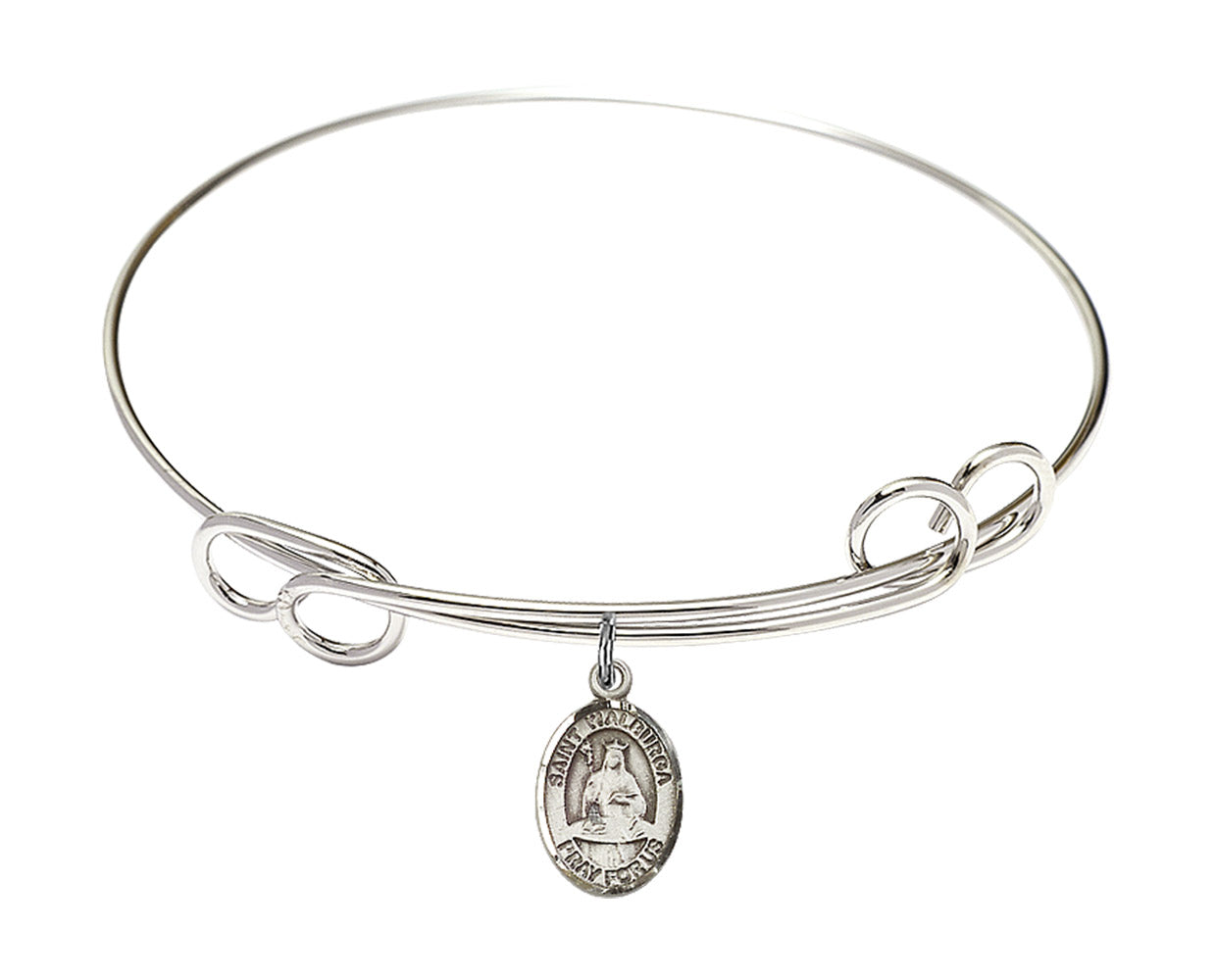 Made with rhodium-plated or gold-plated hand-wrapped wire bangles and Sterling Silver or 14kt Gold-Filled charm-size (1/2 x 1/4 inch) patron saint medals.On a mission in Germany, along with her brothers and Saint Boniface, Walburga evangelized and healed pagans. She was a nun at the double monastery in Bavaria, Germany, founded by her brother . She was made successor and became abbess after his death. The day of her canonization, May 1, is often celebrated on May Day, also known as Walpurgisnacht to pagans.