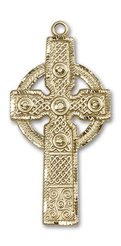 This cross is 1 7/8 x 7/8 inches in size. Our handmade crosses are available in Sterling Silver, 14kt Yellow Gold, and 14kt Gold-Filled. Choose a custom chain of your own styling.