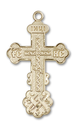 This cross is 1 1/2 x 7/8 inches in size. Our handmade crosses are available in Sterling Silver, 14kt Yellow Gold, and 14kt Gold-Filled. Choose a custom chain of your own styling.