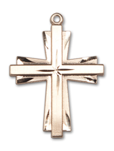 This cross is 1 X 3/4 inches in size. Our handmade crosses are available in Sterling Silver, 14kt Yellow Gold, and 14kt Gold-Filled. Choose a custom chain of your own styling.