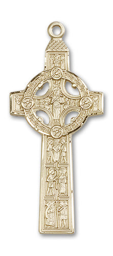 This cross is 1 3/4 x 3/4 inches in size. Our handmade crosses are available in Sterling Silver, 14kt Yellow Gold, and 14kt Gold-Filled. Choose a custom chain of your own styling.